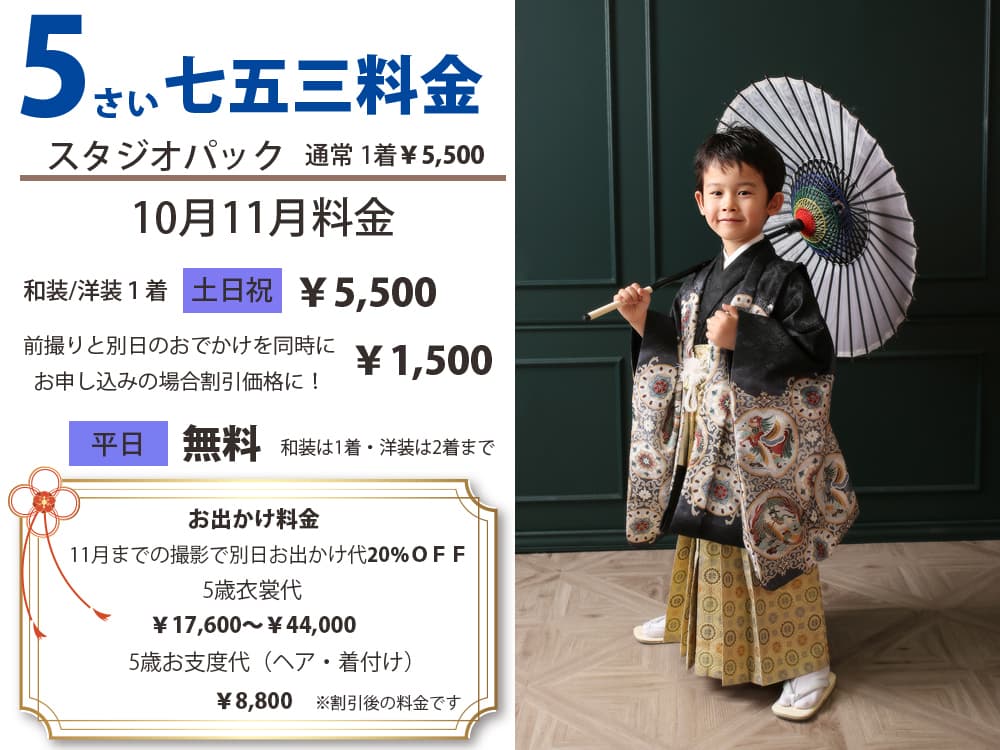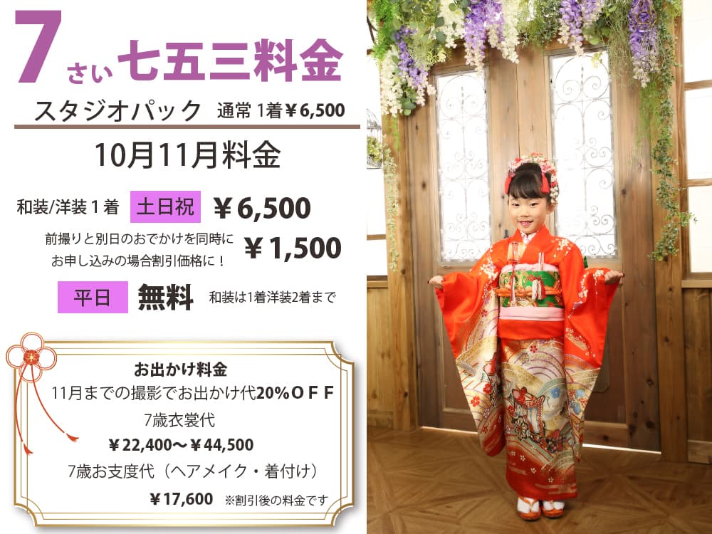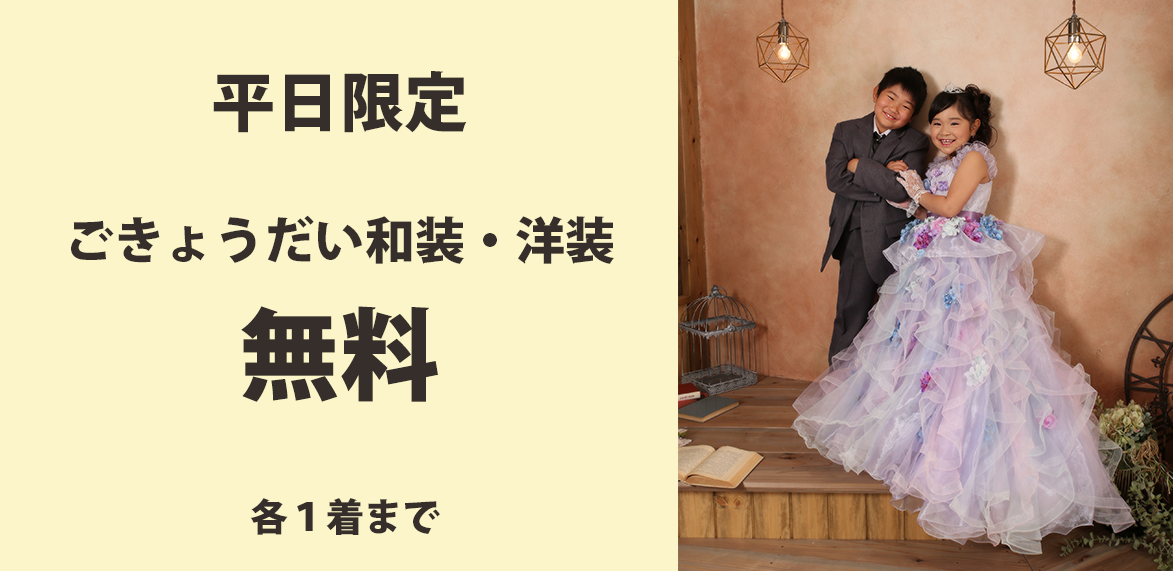 | きょうだい | 10・11月平日限定無料 和装&洋装各1着まで |